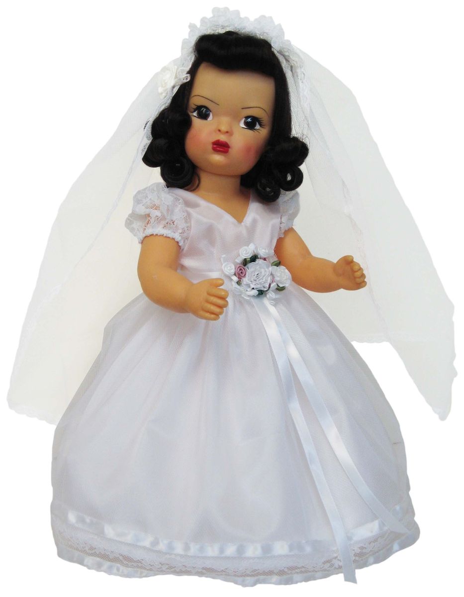 White taffeta and lace wedding dress, attached stiff slip, matching panties, and veil bouquet. Copy of original. $50